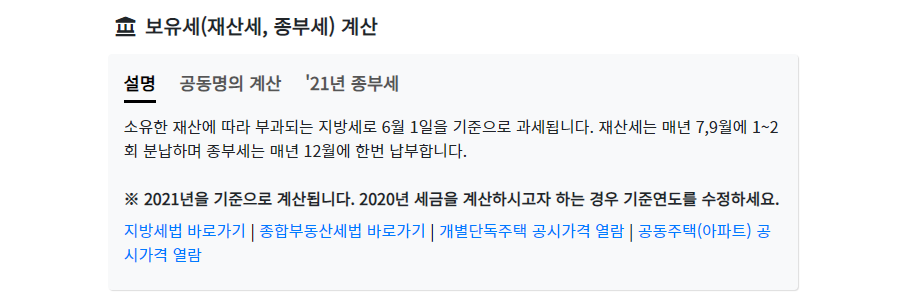 종부세 계산기는 아래로 접속 가능하다.