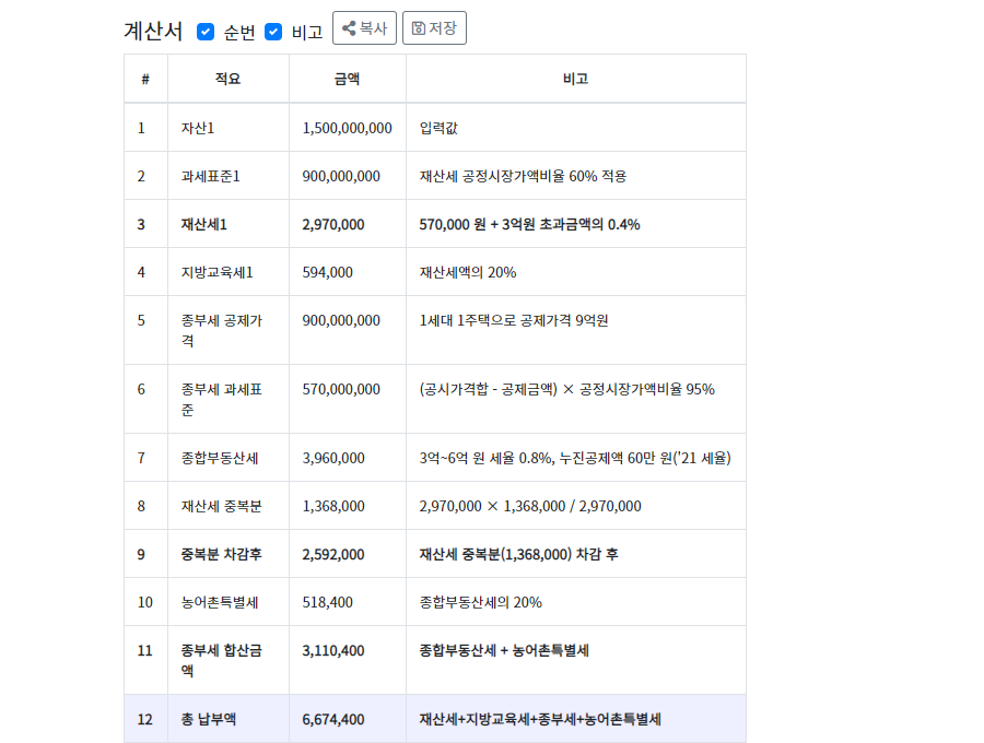 납부해야 할 총 세액은 667만원이라는 뜻이된다.