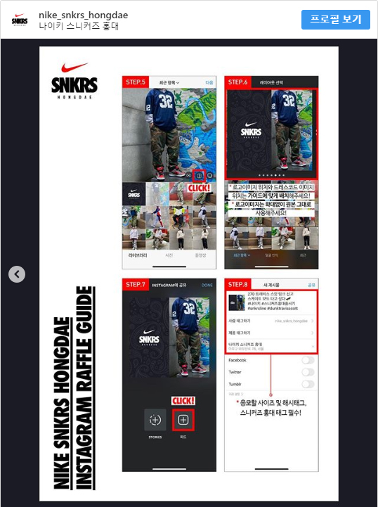 나이키 스니커즈 홍대 인스타그램에 따르면