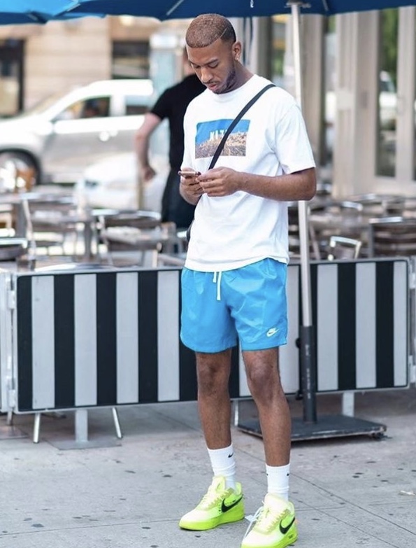바지는 무릎아래보다는 무릎위로 떨어지는 7인치 반바지가 좀 더 스포티한 느낌을 줄것이다.